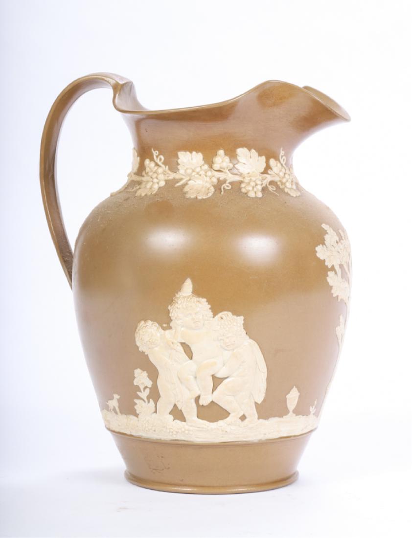 SPODE JASPERWARE PITCHER with GRAPES & PUTTI