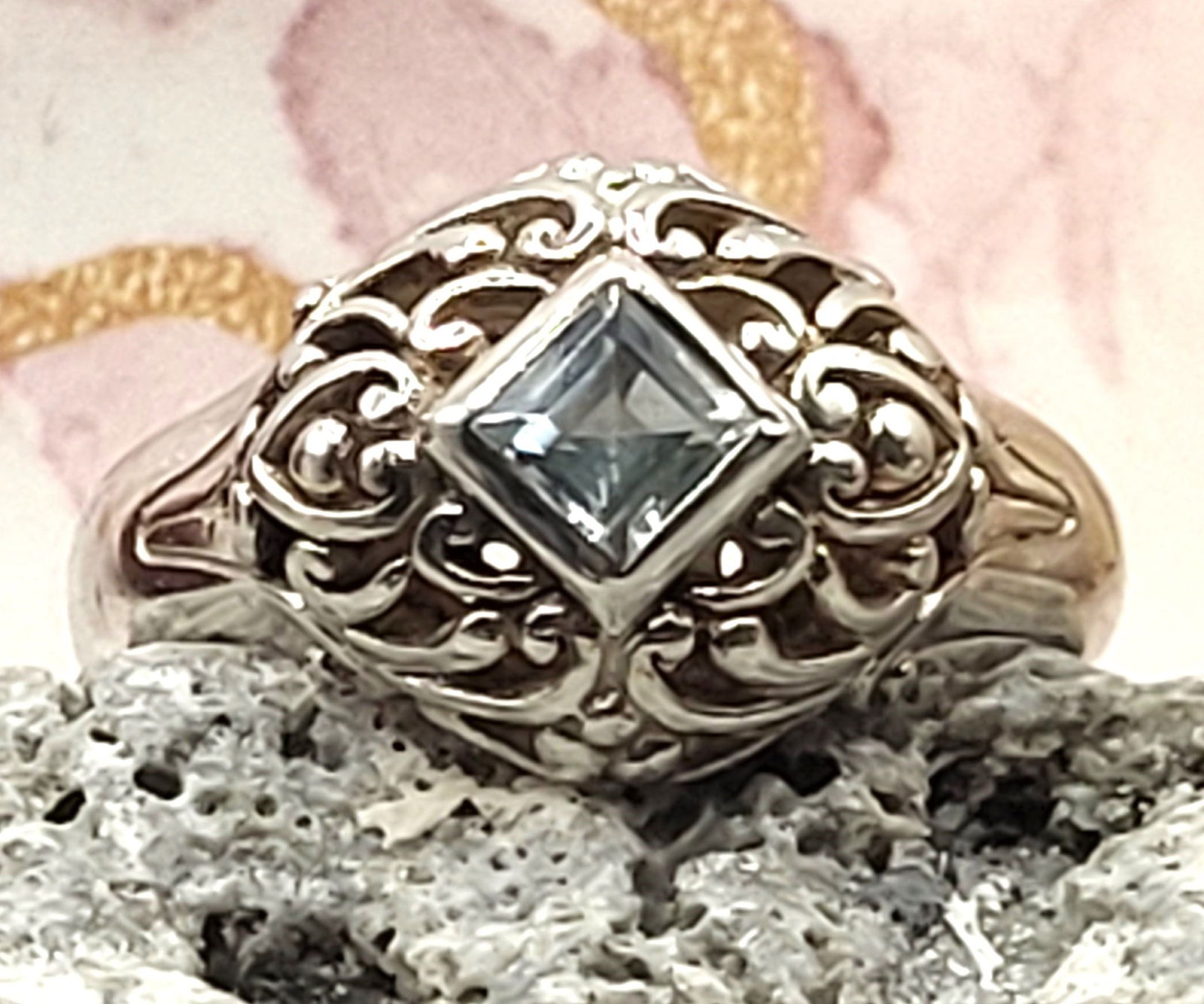 Square-Cut Sky Blue Topaz Well-Made Ring .925