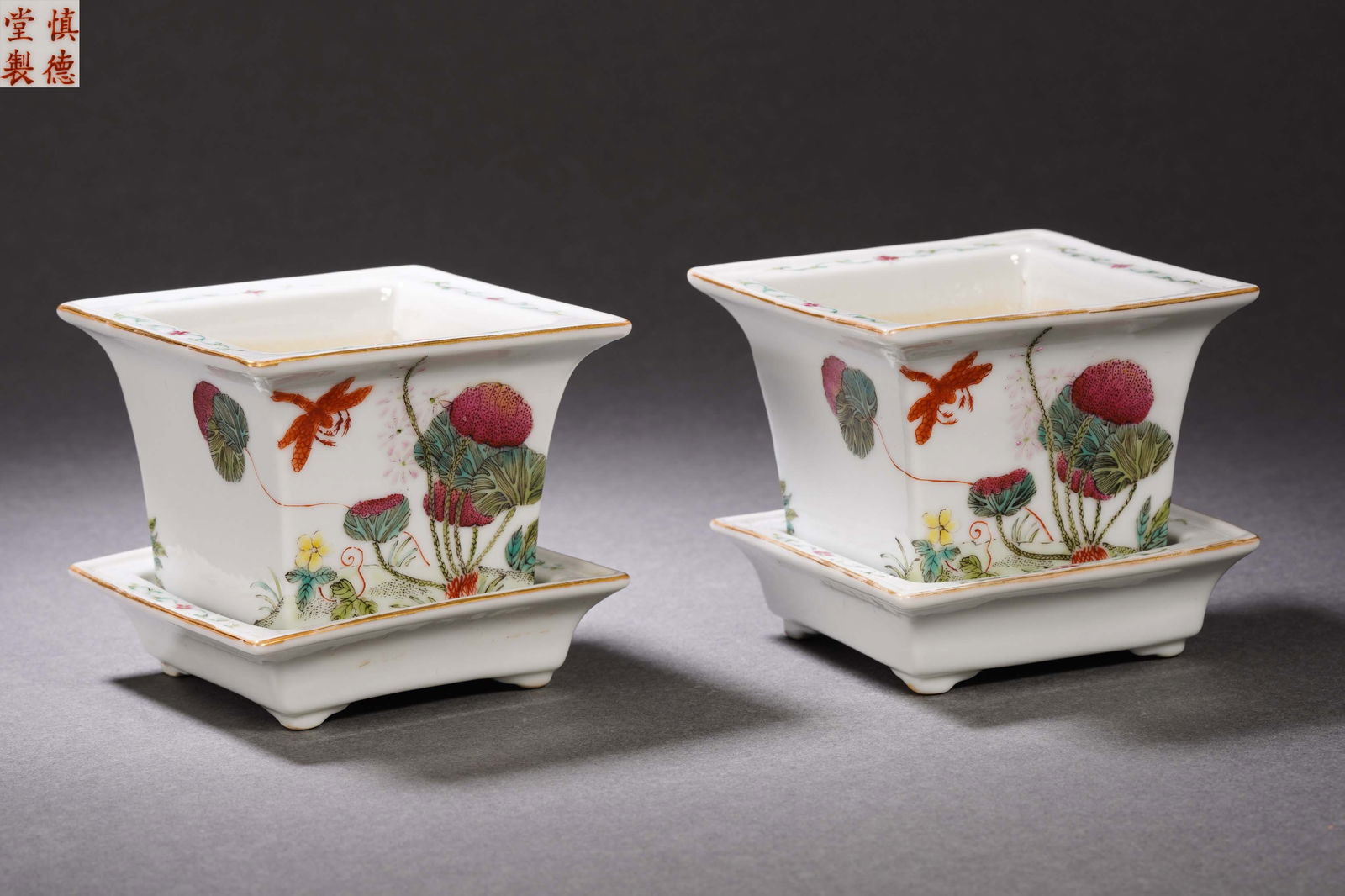 Square flower pot with pastel floral pattern