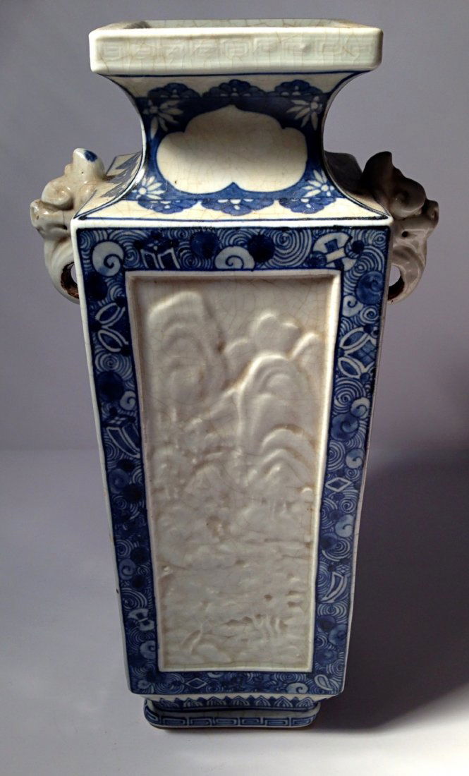 Squared porcelain vase with two handle
