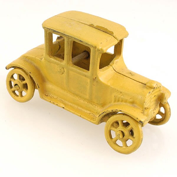 Cast Iron #5 Yellow Toy Race Car w Lifting Hood