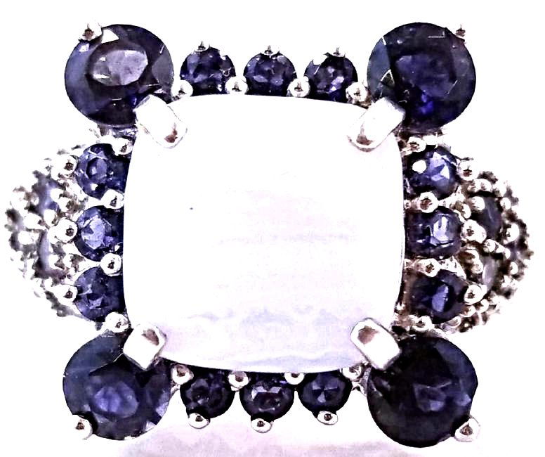 SS Amethyst & Cabochon Cut White Stone Ring