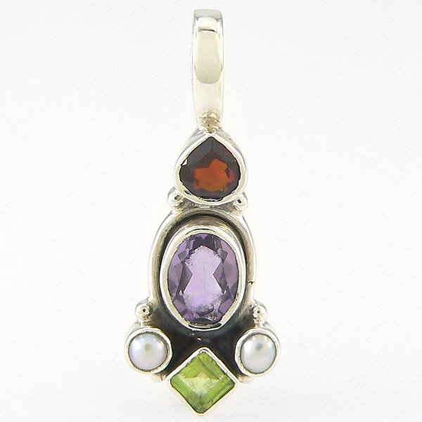 SS MULTI GEMSTONE PENDANT 1.25IN