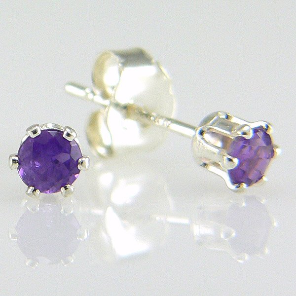 SS ROUND AMETHYST STUD EARRINGS 3MM