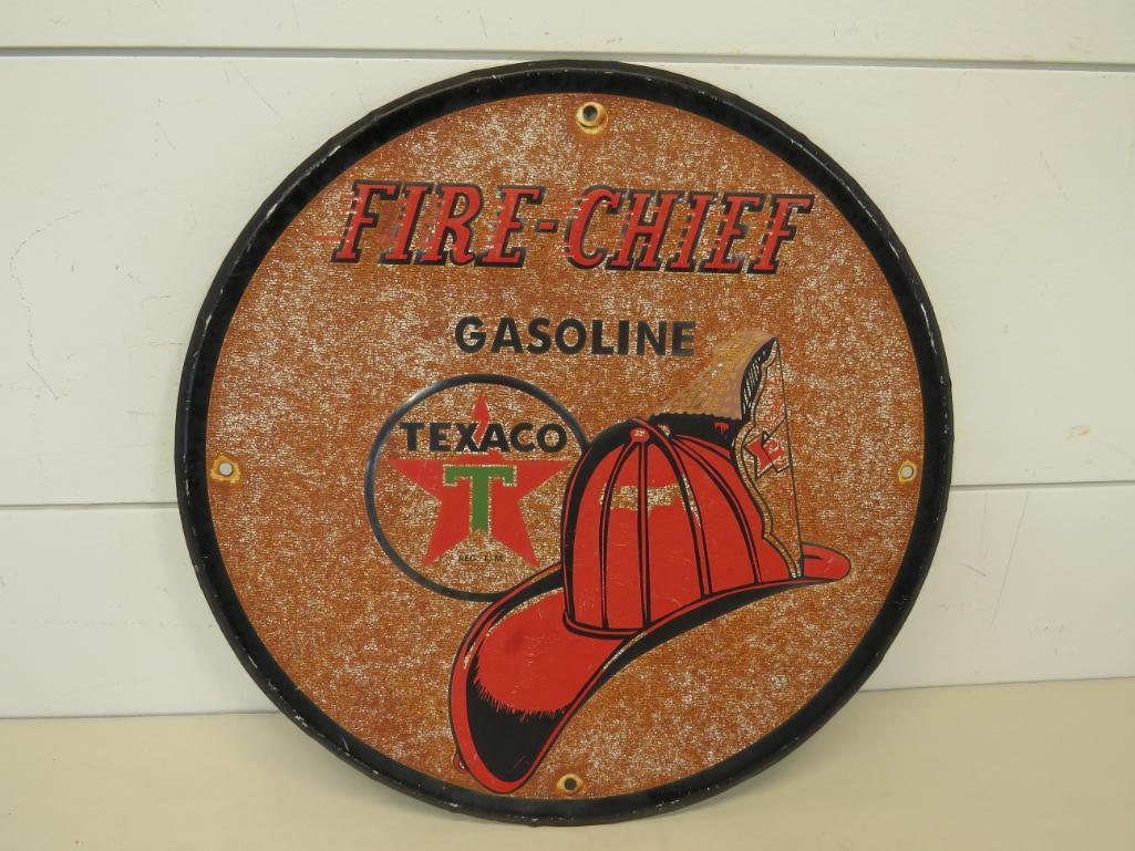 SST Texaco Fire Chief Embossed Button Sign