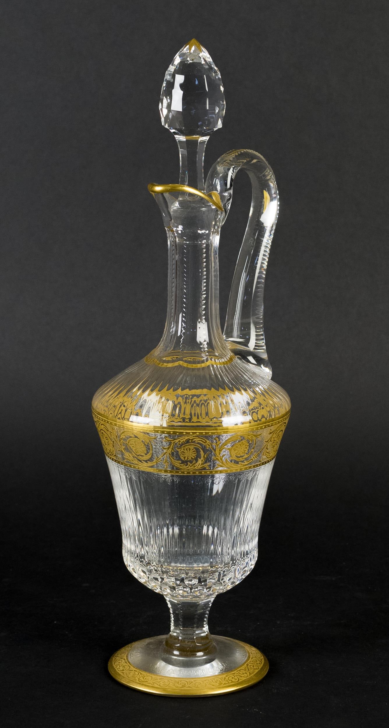 ST. LOUIS CRYSTAL THISTLE PATTERN CLARET JUG.