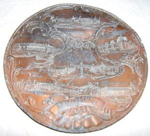 Sold2- 1903 & 1933 WORLDS FAIR SERVING TRAYSIncludes 1903 St Louis Worlds fair Tray with great Indian graphics. Tray has some wear. 1904 St Louis Worlds Fair Tray in etched silver plate. Very nice condition. Plus 1933 Chicago Worlds Fair Tray wSee Sold Price
