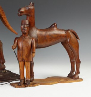 Stack Laminated, Carved Walnut Camel & Articulated