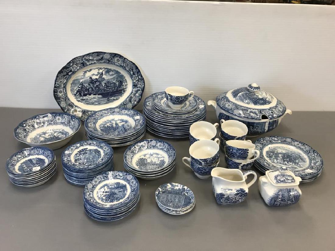 Lot of Delft blue and white porcelain plateMar 02, 2026Lot of 19 Wedgewood Blue Jasperware Cups and SaucersMar 05, 2026Lot of 24 Transferware Plates & Serving Dishes3 hrs LeftLOT BLUE & WHITE PORCELAIN, CHINESE EXPORT, ETC 8PMar 07, 2026Blue and White Porcelain Serving Lot Platter Sugar Bowl and Covered JarMar 04, 20268' TABLE LOT OF 19TH C. IRONSTONE & PORCELAIN, 339 hrs LeftVintage Blue Willow Dinner Plate & Blue Spode Italian Bowl2 hrs LeftSpode - Blue Colonel Bone China Dinner Service for 125 days LeftRoyal Worcester “Blue Bow” Dinner Service – Plates & TureenLiberty Blue Victorian Scene Soup Bowl1 day LeftVtg Royal Ironstone Dishes7 days LeftA Pair of Serving Plates and a TureenMar 03, 2026A Soup Tureen with Cover and PlatterMar 03, 2026(3) CHINESE EXPORT SERVING BOWLS2 hrs LeftBlue Willow China, Large CollectionMar 07, 2026GROUP JAPANESE BLUE AND WHITE PORCELAIN DISHESFeb 28, 2026