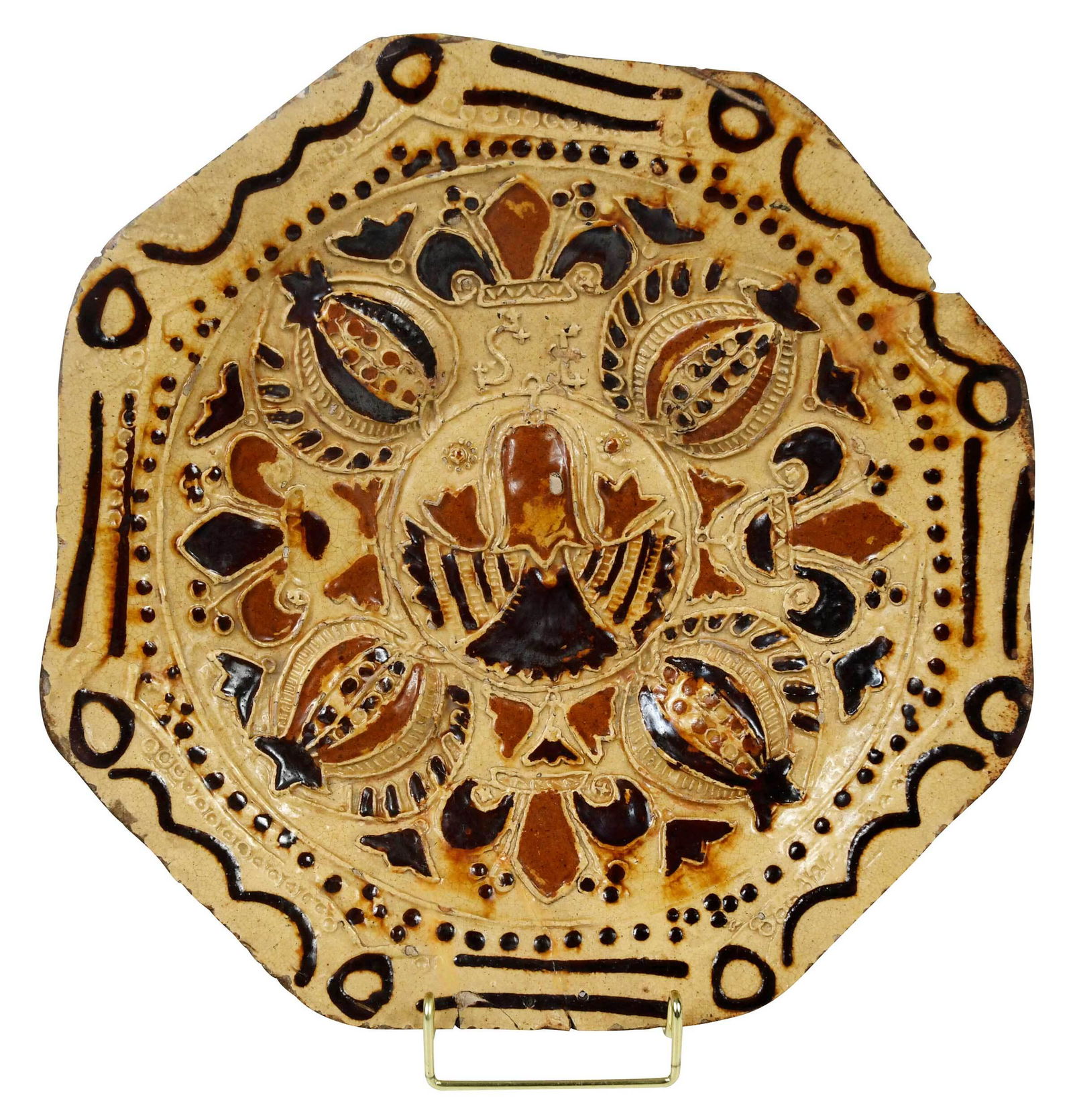 Staffordshire Slipware Press-Molded Octagonal Dish