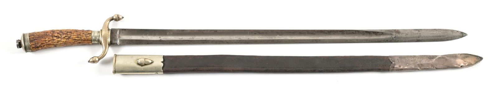 Rare Late WWII Japanese Army Type 95 Wood "Pineapple" Handle NCO Katana with ScabbardTurkish M1935 Mauser Bayonet and Scabbard WWIIAntique French M1822 Cavalry Sword, KlingenthalMar 28, 2026AN EARLY GERMAN HUNTING DAGGER HIRSCHFAENGER, CA 18107 days LeftM1871 EXTRA-SEITENGEWEHR DRESS BAYONET BY CLEMENT & JUNGMar 27, 2026GERMAN FASCHINENMESSER SHORT SWORDMar 27, 2026GARDE JAGER HIRSCHFANGER SHORT SWORD BY CLEMEN & JUNGMar 27, 2026CIVIL WAR ARTILLERY SHORT SWORD W/ SCABBARD6 days LeftU.S. MODEL 1840 NON-COMMISSIONED OFFICER’S SWORD BY AMESMar 27, 2026Large 44 inch Cold Steel Medieval Style Sword, Leather Scabbard BoxMar 23, 2026QUILLBACK FASCHINENMESSER SHORT SWORDMar 27, 202618th Century Austrian Hunting Sword5 days LeftSpanish Colonial Sword w/ScabbardMar 28, 2026Spanish Cavalry Sabre w/ ScabbardMar 28, 2026Bayonet in Sheath (marked Broad Arrow WD), 22"L.2 days Left