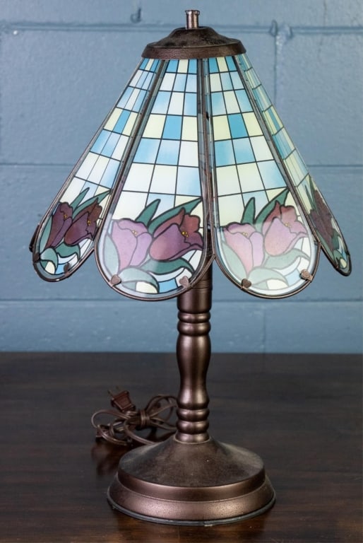 SoldTiffany Style Stained Glass Mission Style Table LampTiffany Style Stained Glass Mission Style Table Lamp. Small crack in one of the panels. Measures 21" tall x 14" wide. All invoices must be paid within 24 hours of the sale. We offer multiple shippingSee Sold Price