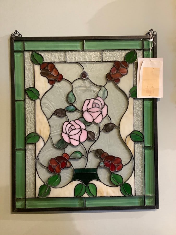 Stained glass window hanging with damage(21in.x25in.)