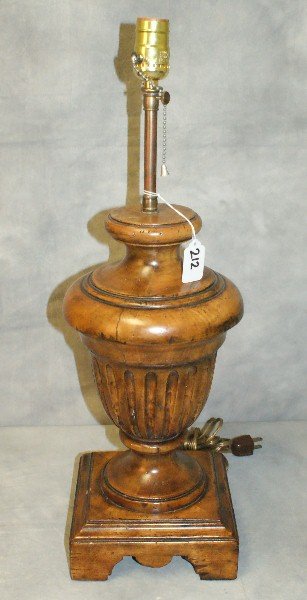 Stained urn form wood table lamp.