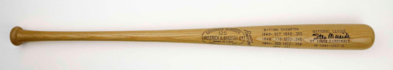 SoldSigned Hall of Fame Bat Stan Musial ModelApprox 40 Signatures obtained in person by our consignor. Just a sample includes Mathews, Musial, Seaver, Feller, Koufax, Aaron, Ted Williams, Mantle, Mays, Kiner, Killebrew etc. See images for compleSee Sold Price