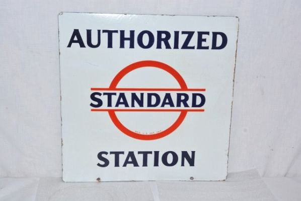 (3) Atlantic/Standard Oil/Signal Oil Single-Sided Porcelain SignsMar 14, 2026Large Standard Oil 8' SSP ID SignMar 21, 2026ASSOCIATED CERTIFIED "CLEAN, COMFORT STATIONS" TIN REST ROOM SIGN1 day LeftRailway Express Agency Double Sided Porcelain Sign In RingMar 21, 2026Standard Motor Sign6 days LeftNo Smoking Stop Your Motor SSP SignMar 20, 2026General Motors Factory Authorized Service Single Sided Porcelain SignMar 20, 2026Authorized Pleez-Ing Food Store Kash Karry Co. Double Sided Porcelain SignMar 21, 2026Blackstone Cigar Single Sided Porcelain SignMar 21, 2026No Parking Motor Banking Lane Sign, Green Lettering on White Background, 19h x 25w x 2d inchesPS Park & Shop Units DSP SignMar 21, 2026Standard Oil Products SSP Advertising SignMar 21, 2026HAVE FARE READY PAY AS YOU ENTER PORCELAIN BUS SIGN2 days LeftFord Authorized Service Station "Using Genuine Ford Parts SSP Sign w/ FrameMar 21, 2026Stop Sign, 31h x 31w x 2d inches, Red & White Octagon, Reflective Front, few scratchesRare Sterling Motor Oil Double Sided Porcelain Tombstone SignMar 21, 2026