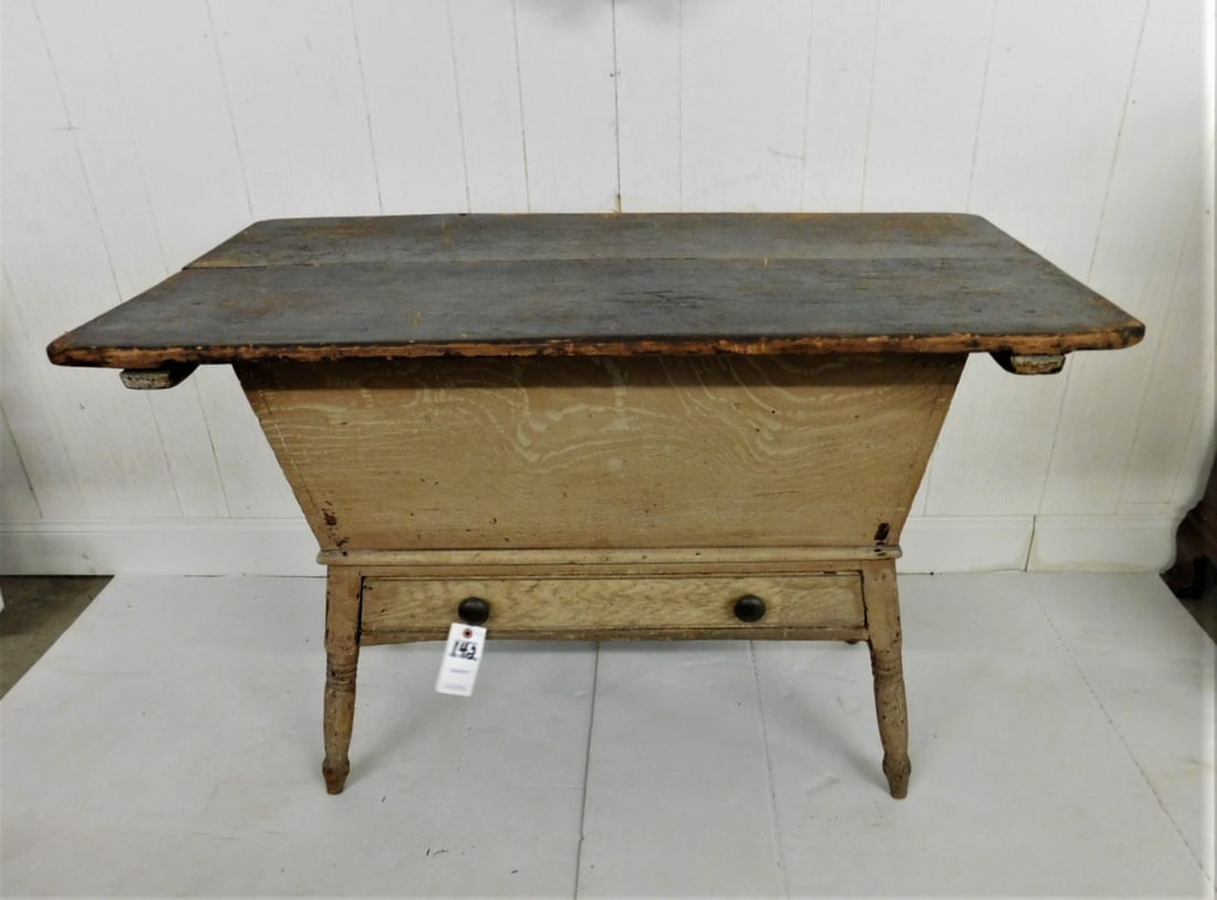 A Pennsylvania Pine Dough Table, c. 1830Mar 15, 2026NEW ENGLAND POPLAR TAVERN TABLE.Mar 19, 2026Primitive American Pine Dough Box on Stand in Original Blue Paint2 days LeftCountry TableMar 14, 202619th Century American Pine Farm Table Original Surface One Drawer Rustic2 days LeftNEW ENGLAND PINE AND POPLAR TAVERN TABLE1 day LeftWalnut Country Tavern Table4 days Left19TH C. COUNTRY SORTING / WORK TABLEMar 22, 2026Early door from a ship table10 hrs LeftLate 18th C / Early 19th C. Quebec Primitive Hinged Top Blanket Chest BoxMar 21, 2026AMERICAN GRAIN-PAINTED POPLAR HANGING CUPBOARD.Mar 19, 2026American Painted Pine Bucket BenchMar 15, 2026American Country Dry Sink2 days LeftFINE ONE DRAWER WORK TABLE IN OLD RED WASH PROB. PENNSYLVANIA 28" X 61" X 34"Mar 15, 2026Antique Rustic Painted Wood Bench Stool 30 x 15 x 17.5Mar 21, 2026AMERICAN GRAIN-PAINTED POPLAR AND PINE YOUTH-SIZE BLANKET CHEST, DATED 1837. 12.5"h. 20.75"w.Mar 19, 2026