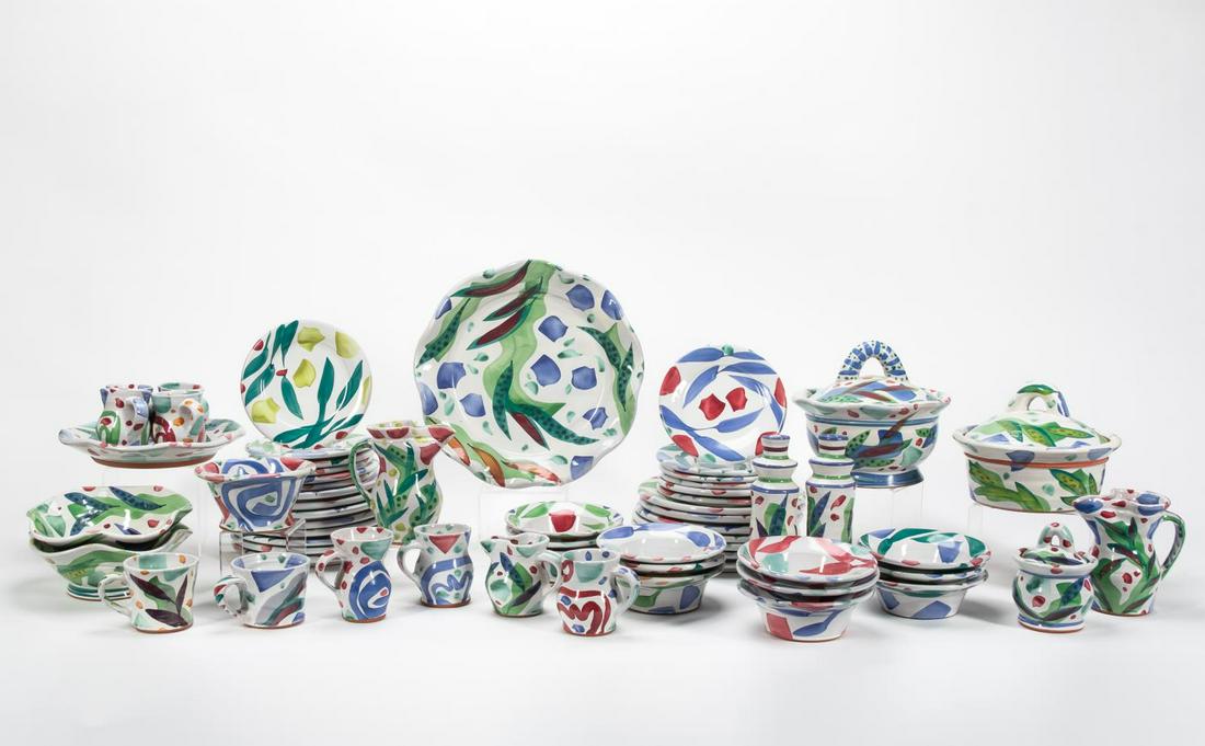 STANLEY MACE ANDERSEN ART POTTERY DINNER SET, 61PC