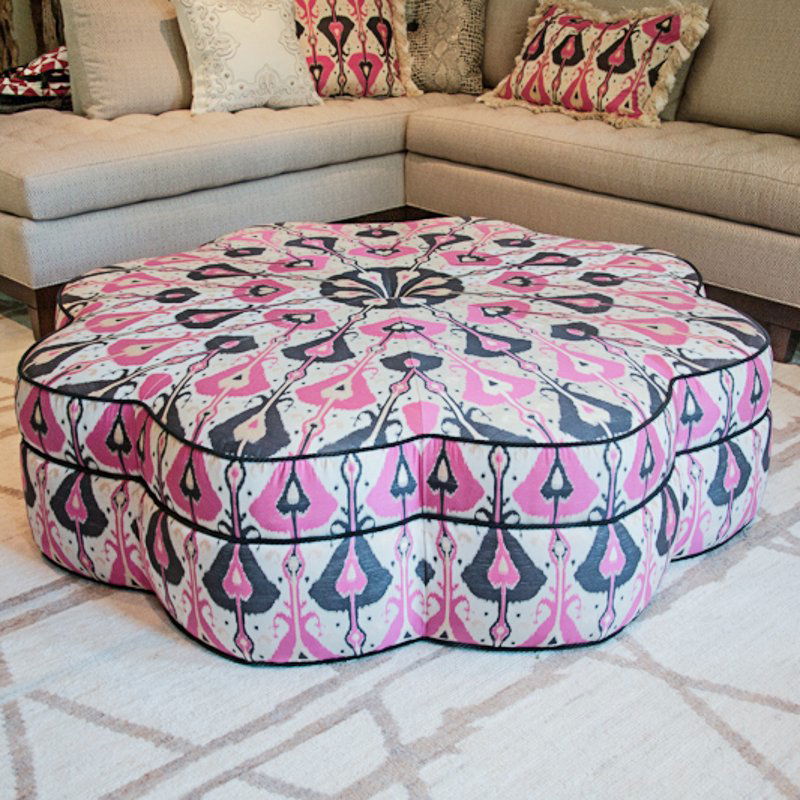 Modern Handwoven Uzbek Suzani Ottoman Footstool