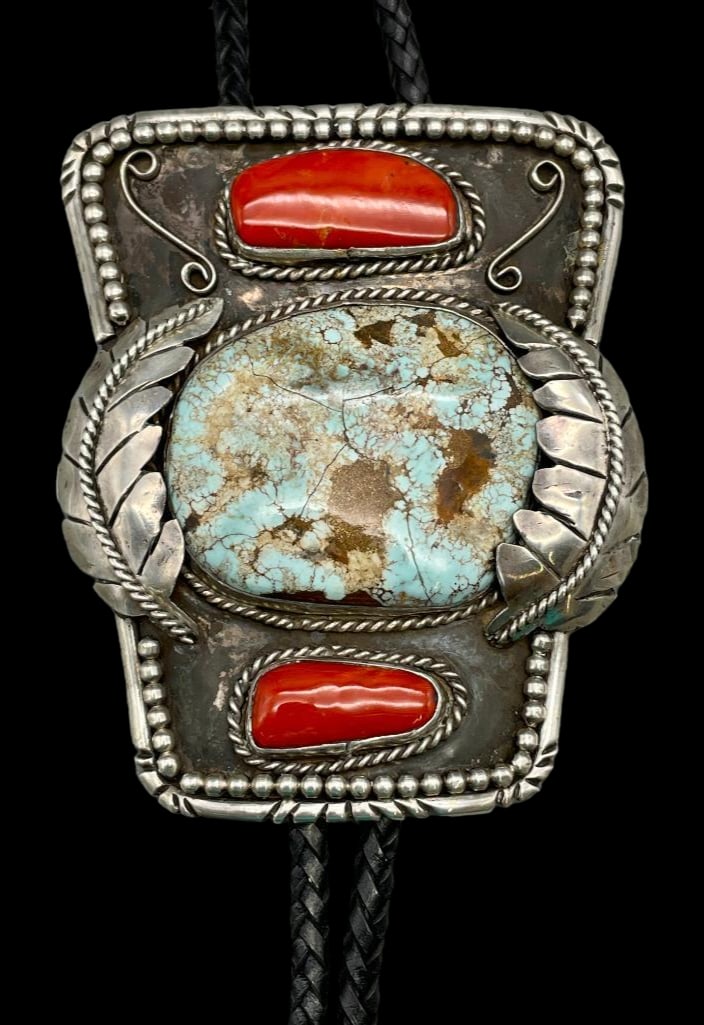 NATIVE AMERICAN NAVAJO, AND POSSIBLY OTHER, STERLING SILVER BOLO TIES, LOT OF THREE5 days LeftA FINE TURQUOISE AND CORAL NECKLACE WITH A SILVER AMULET BOX, GAU, 19TH CENTURYMar 11, 2026CLASSIC Silver & Turquoise Bolo PendantTurquoise & Coral Bear Claw Bolo Tie2 days LeftSterling Turquoise & Coral Bolo Tie2 days LeftHopi Turquoise & Coral Storyteller Bolo Tie2 days LeftVintage Navajo Nevada Turquoise & Coral Bolo TieMar 08, 2026Native American Sterling & Turquoise Bolo Tie2 days LeftBen Begaye Turquoise and Sterling Silver 5" Pendant22 hrs LeftVintage Native American Turquoise Sterling Silver Pendant Necklace Brown Leather Necklace 59 GramsMar 19, 2026Sterling Silver Navajo Bolo Tie by Bernice Bonney with Green Turquoise CabochonFeb 27, 2026Vintage Navajo Turquoise & Coral Bolo TieMar 08, 2026Vintage Navajo Turquoise & Coral PendantMar 08, 2026Silvar Native American Style Turquoise Bolo Tie2 days LeftSterling Silver Wolf Bolo Tie with Turquoise by Dan Nieto on Black LeatherMar 10, 2026Sterling Silver Wolf Bolo Tie with Turquoise by Dan Nieto on Black Leather4 days Left