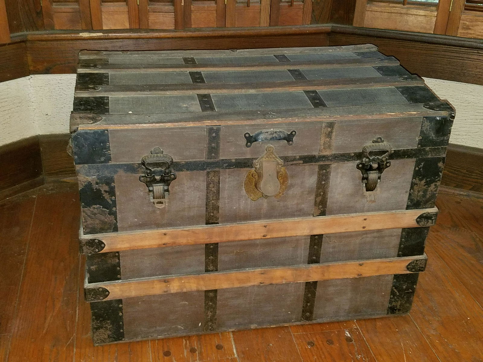 Vintage Steamer Trunk, Yellow w/ Iron Banding, 13h x 30w x 15d inches w/ Squire Brass PadlockCrawford Family Auctions LLC4.6(194)$20