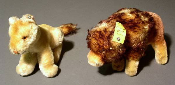 Steiff lioness, 8"l. w/button and a Steiff buffa