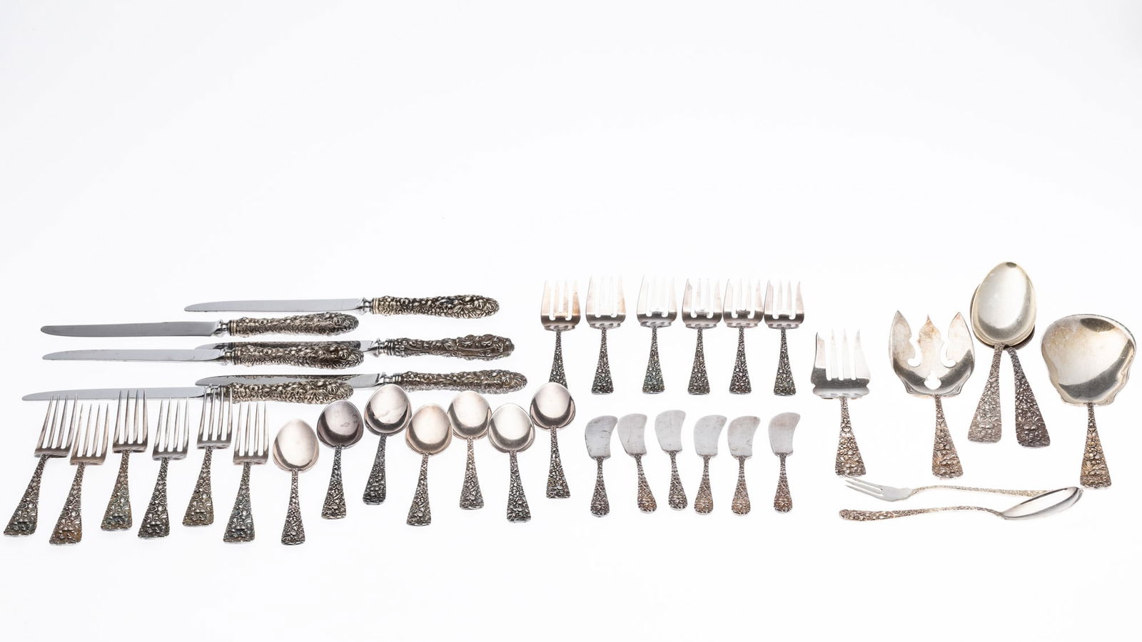 Steiff Rose Pattern Sterling Silver Flatware, 39 pcs