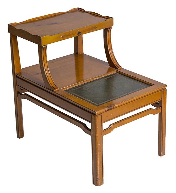 SoldMid Century step back side table, brass capped feet, table is 20" wide, 32" deep, 22" tall.Mid Century step back side table, brass capped feet, table is 20" wide, 32" deep, 22" tall.See Sold Price
