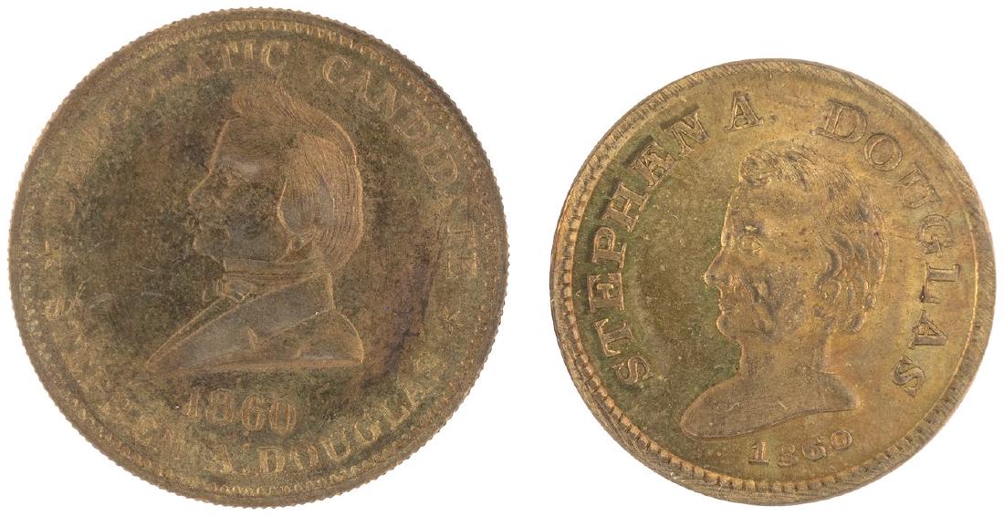 STEPHEN DOUGLAS PRESIDENTIAL CAMPAIGN TOKEN PAIR DeWITT