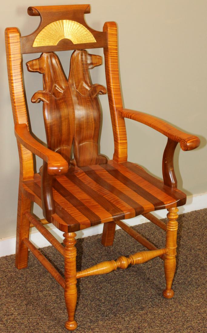 Stephen Huneck figured maple arm chair
