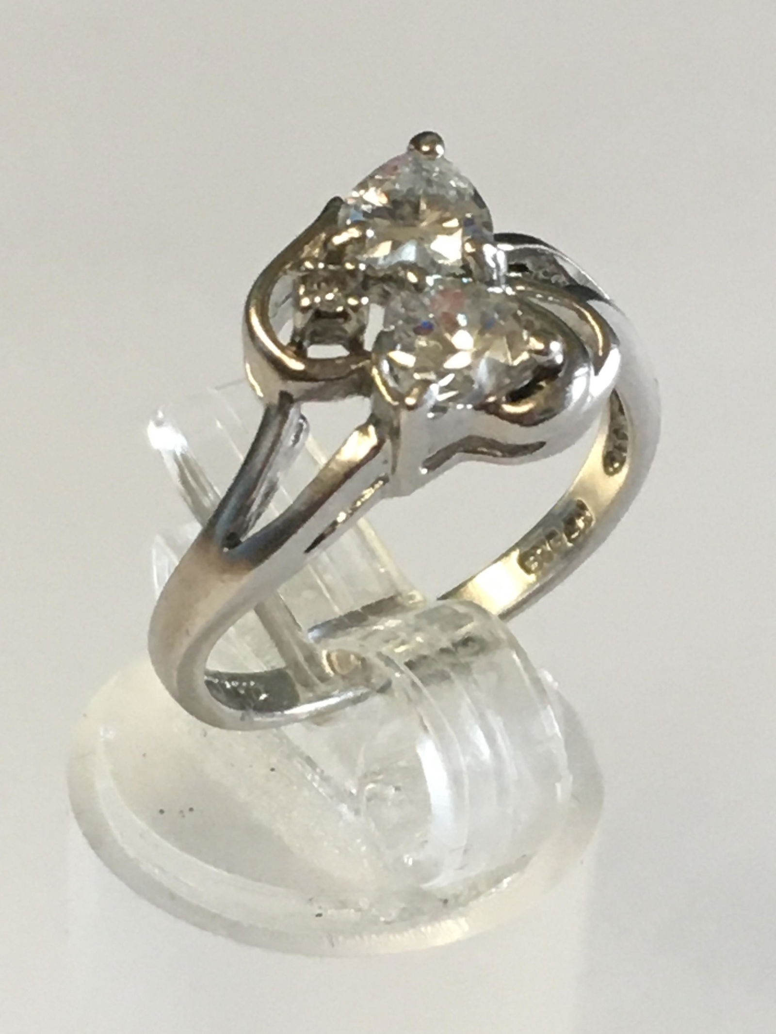 Sterling 2 Heart White Stone Ring