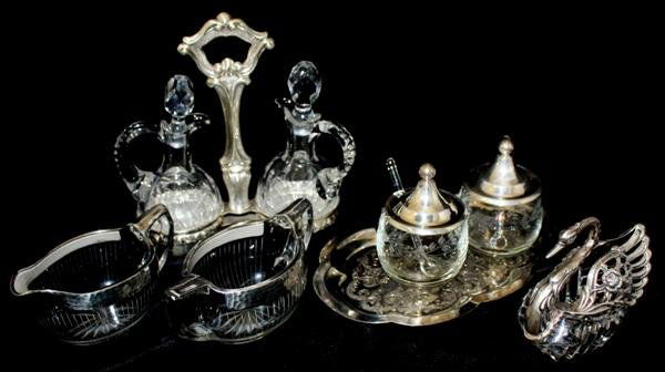 7PC LOT OF WATERFORD CRYSTAL, LISMORE PATTERNMar 07, 2026Lot of Mixed Silverplate and Sterling ItemsFeb 27, 2026Cut Glass Perfume Bottles and Vanity Decanter LotFeb 27, 20268 Items Lot, Crystal Pieces3 days LeftLot of sterling silver dresser accessories, including various covered glass jars and scent bottles.Mar 01, 2026A composed lot of six various silver and glass tableware objectsFeb 24, 2026White Star Line Estate Lot of 5 Sterling Rimmed Salt Cellars, Crystal Vase & 2 WSL Pressed Crystal BMar 15, 2026Sterling Mounted Glass Serving PiecesFeb 22, 2026A Trio of Lead Crystal Decorative Items, Including RCR Royal Crystal Rock3 days LeftFostoria American Clear Glass Set Salt Cellar Pitcher Spoons and Cups Lot of TenMar 04, 2026Four Cut Glass TablewaresMar 05, 2026Silver and crystal oil and vinegar sets (2) and salt and pepper shakers (3)3 days LeftA British Cut Crystal & Silver Plated Cruet Set, 19th C3 days LeftGROUPING OF VICTORIAN CONDIMENT SETSFeb 21, 2026Collection of Seven Cut Glass Crystal TablewaresFeb 28, 2026Cut Crystal Tazza, Compotes and RinsersFeb 25, 2026