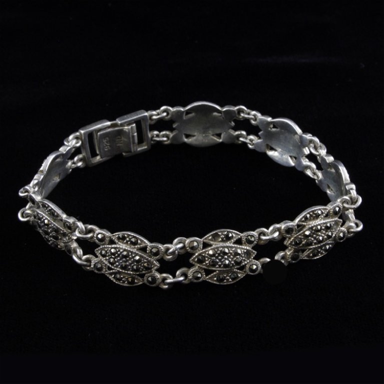Vintage Sterling Silver marcasite onyx Bracelet 7" 15 gramsAnnzstiques Auction House4.4(680)$11 day Left