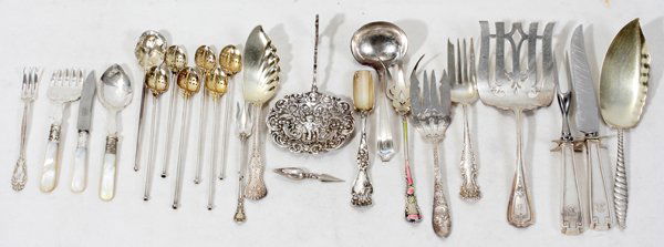 STERLING & SILVER PLATE FLATWARE, 37 PIECES