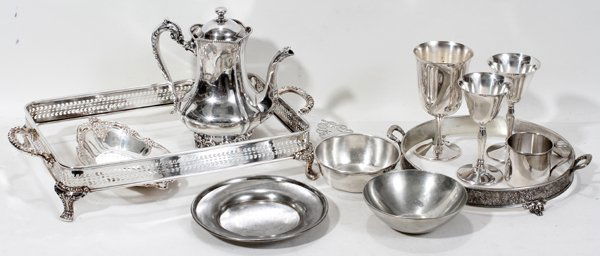 Lot of 48 Pewter, Mugs, Plates, Porringers & More1 day Left20PC LOT OF STERLING SILVER ITEMS, 44.3 T.O.W.Mar 07, 2026Lot of sterling silver tableware. Various handled baskets and dishes, all except for one withoutMar 01, 2026Sterling 925, 800 French Silver & Silverplate LOT6 days Left(Lot of 8) Assorted Sterling Silver Table Articles3 days LeftSilverplate Flatware, Tableware and Accessories6 days Left(17) COLLECTION OF STERLING, .800 SILVER & WEIGHTED STERLING TABLE ARTICLES2 days Left(5) ENGLISH ELKINGTON & CO. STERLING SILVER TEA & COFFEE SERVICE2 days LeftSterling Silver Estate Tablewares4 days LeftANTIQUE WEBSTER STERLING SILVER CUTLERY AND BOWLS2 days LeftA group of sterling silver and silver plated serving articlesMar 03, 2026VINTAGE STERLING SILVER TABLEWARE COLLECTION1 day LeftAntique sterling silver holloware and flatware, 11pc: Saart Brothers weighted sterling tea / coffee1 day LeftANTIQUE AND VINTAGE SILVER PLATED TABLEWARES2 days LeftCollection Various Sterling Silver Weighted Tables WaresFeb 28, 2026A group of sterling silver table itemsMar 03, 2026