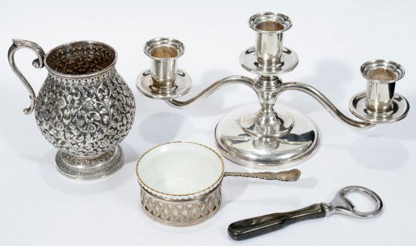 STERLING & SILVER TABLEWARE, 4 PCS,