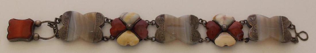 SoldAntique Scottish Agate Link Silver BraceletAntique Scottish sterling silver bracelet, featuring agate and other gem links. Bracelet is 8.5" long and 15mm wide. Weight - 36.7 grams.See Sold Price