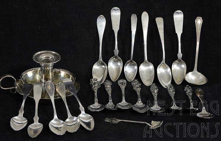 Sterling Candlestick And Spoons 21 OZT