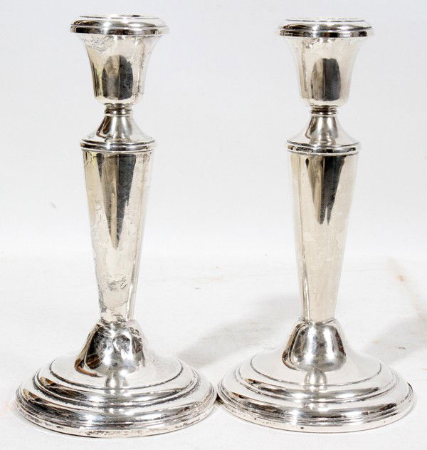 A PAIR OF SILVER CANDLESTICKS. 455 grams overall. 14cm high.Hannam's Auctioneers Ltd4.3(416)£401 hr Left