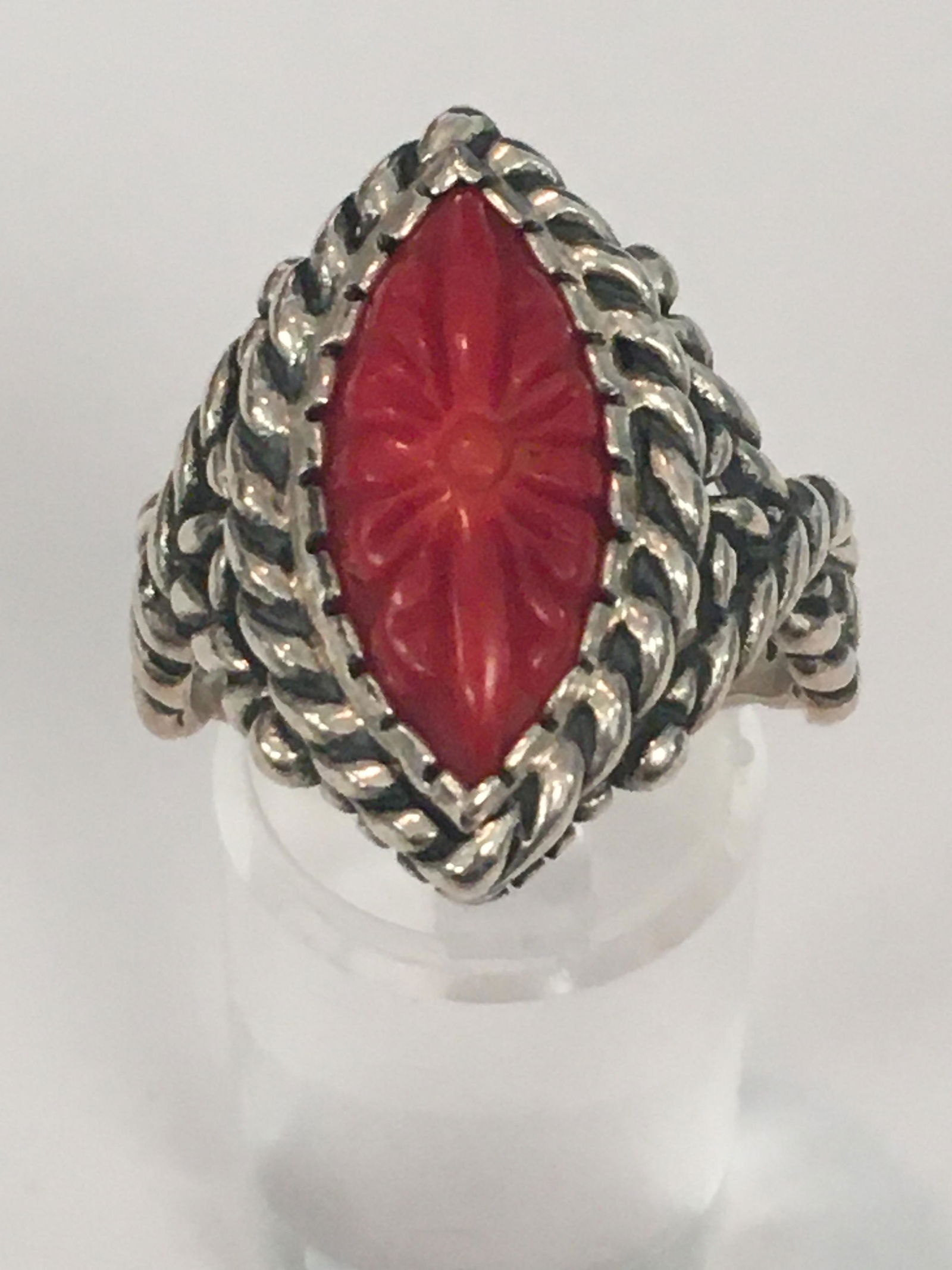 Sterling Carved Red Stone Ring