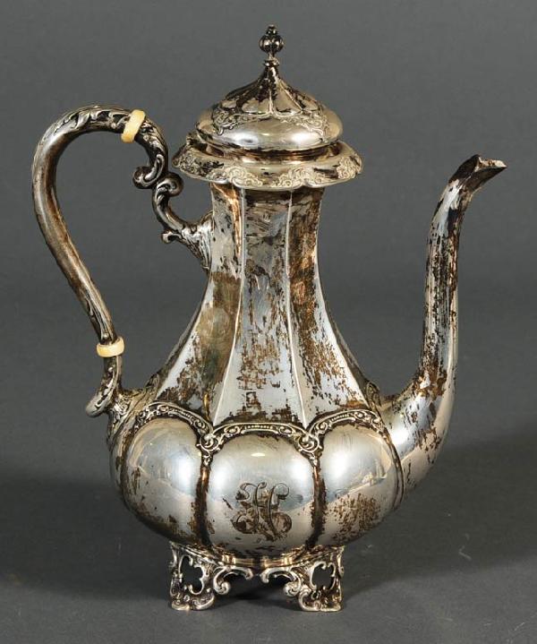 William Hunter 1842 Sterling Teapot Set of ThreeFeb 28, 2026Loring Andrews Sterling Silver "Castle" Pattern Tea Pot, #20712 hrs LeftSterling "Connecticut Cup" coffeepot trophy, 1933Feb 19, 2026Ornate Repousse Silverplated Tea Pot by Simpson & HallFeb 16, 2026Vintage Gorham Silverplate Ribbed Pattern Teapot2 days LeftHarvard Delphic Club sterling coffee potFeb 19, 2026Vintage RB Rogers Silverplate Coffee Pot 23332 days LeftSilver French coffee pot on three claw feet and a spout in the shape of a horse's head, decoratedFeb 15, 2026Gorham Sterling Silver Coffee Pot4 days LeftEnglish Sterling Teapot, George Baskerville, 1799Feb 26, 2026Silver coffee pot with rich floral and rocaille motifs, a gracefully shaped spout, and a woodenFeb 15, 2026Vtg International Silver Company Coffee Pot USAFeb 18, 2026Silver coffee pot, Louis XVI period, with richly decorated rocaille and leaf scrolls in relief andFeb 15, 2026Vintage Reed & Barton Regent 5600 Silverplate Coffee Pot Tea PotFeb 25, 2026Vtg Leonard Silver Plated Coffee PotFeb 18, 2026Antique Georgian English embossed sterling silver repousse floral coffee / tea pot, London, 1753,Feb 21, 2026