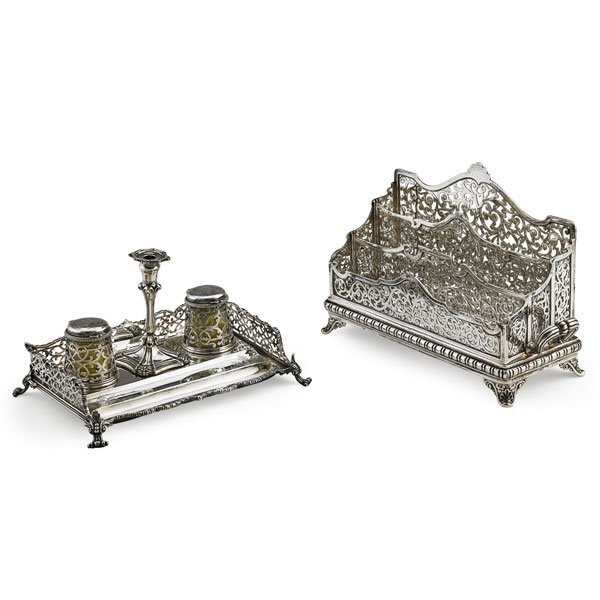 A silver treasury inkstand and a collection of desk inkwells and accessories inkstand, Anthony ...Bonhams4(380)£600(5 bids)