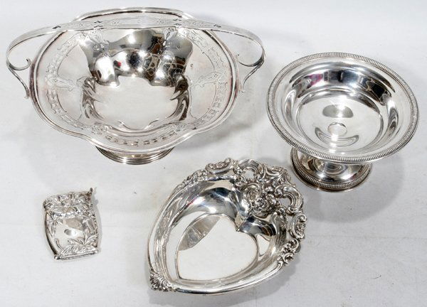 STERLING DISHES (3) & MATCH SAFE