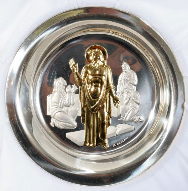 STERLING EASTER PLATE FRANKLIN MINT, DIA 8"