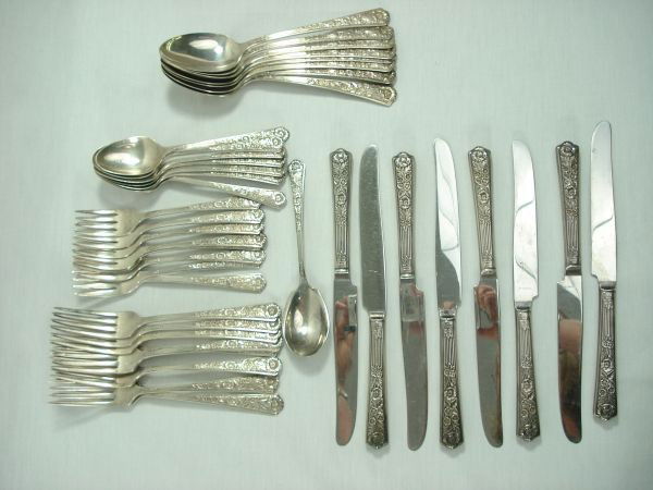 STERLING FLATWARE INC. 7 KNIVES, 4 DINNER FORKS, 4 T-SPOONS & 2 SALAD FORKS APPROX. 22.9 TROY OZ5 days LeftSterling Silver Flatware Service.4 days LeftInternational Sterling Silver "Wild Rose" Flatware 686 GramsMar 28, 2026Stieff "Corsage" Sterling Silver Flatware Service for 8Mar 19, 2026Towle "Old Master" Sterling Silver Flatware Partial Service for 8Mar 19, 2026Prelude International Sterling Flatware, 65 piecesMar 26, 2026Towle "Dorothy Manners" Sterling Silver Flatware 1017 Grams 40 PiecesMar 28, 2026STERLING SILVER FLATWARE BY REED & BARTON, MARLBORO PATTERN 5 DINNER FORKS, 6 DESSERT FORKS, 65 days LeftRogers "Breton Rose" Sterling Silver Flatware Service for 6Mar 19, 2026Kirk Repousse Sterling Flatware, 60 PiecesMar 26, 2026Fine Arts "Processional" Sterling Silver Flatware Service for 7 With ExtrasMar 19, 2026Alvin Chateau Rose Sterling Silver Flatware ServiceMar 24, 2026Reed and Barton "Dancing Flowers" Sterling Silver Flatware Partial Service for 18Mar 19, 2026Towle "King Richard" Sterling Silver Flatware Service for 6 With ExtrasMar 19, 2026American Sterling Silver Sixty-Six Piece Flatware Service2 days LeftInternational / Fine Arts "Processional" Sterling Silver Flatware Service for 10 With ExtrasMar 19, 2026