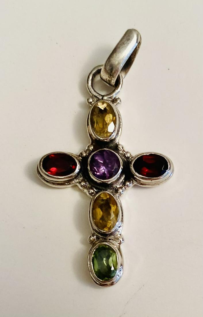 Sterling gemstone cross pendant