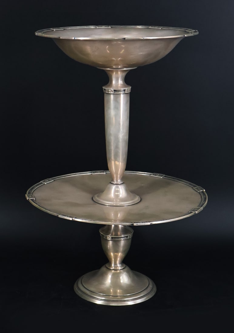 (17) COLLECTION OF STERLING, .800 SILVER & WEIGHTED STERLING TABLE ARTICLES2 days LeftVintage Sterling Silver Ruffled Rim Compote, Weighted2 days LeftRedlich Sterling Silver Compote 3-D Fish Base 88472 days LeftSilverplate Wine CoolerThree tiered dessert stand with scalloped trays and footed base below a trumpet vase with scalloped4 days LeftLarge Silver Plate Punch Bowl Set with Twelve Cups, Ladle, and TrayMar 07, 2026Bonbonniere. 925 silver.Feb 28, 2026Joseph Rogers & Sons Queens Silverplate Epergne 1890 with Shell Motif2 hrs Left4 Sterling Repousse Table Articles including Kirk6 days LeftGorham Medallion Sterling Silver Salt Dip with Monogram 1866Feb 28, 2026A Gorham Sterling Silver Ecclesiastical Chalice 12 OztMar 07, 2026Georg Jensen Sterling Silver Bowl No. 7756 days LeftGeorge III Sterling Silver EpergneMar 16, 2026Elegant 7 Piece 925 Sterling Silver Floral Leaf Epergne CenterpieceFeb 28, 2026Gorham Sterling Silver Master Salt Dip 1872 Date Mark Beaded RimMar 04, 2026STERLING SILVER PIERCED PEDESTAL COMPOTE 310G3 days Left