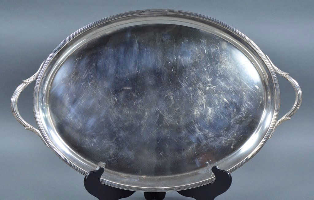 SoldAn Arthur Stone Sterling Silver Tray.An Arthur Stone Sterling Silver Tray. Oval double handled tray, marked on reverse 12.25" x 19.5" Wt: 45.55 oztSee Sold Price