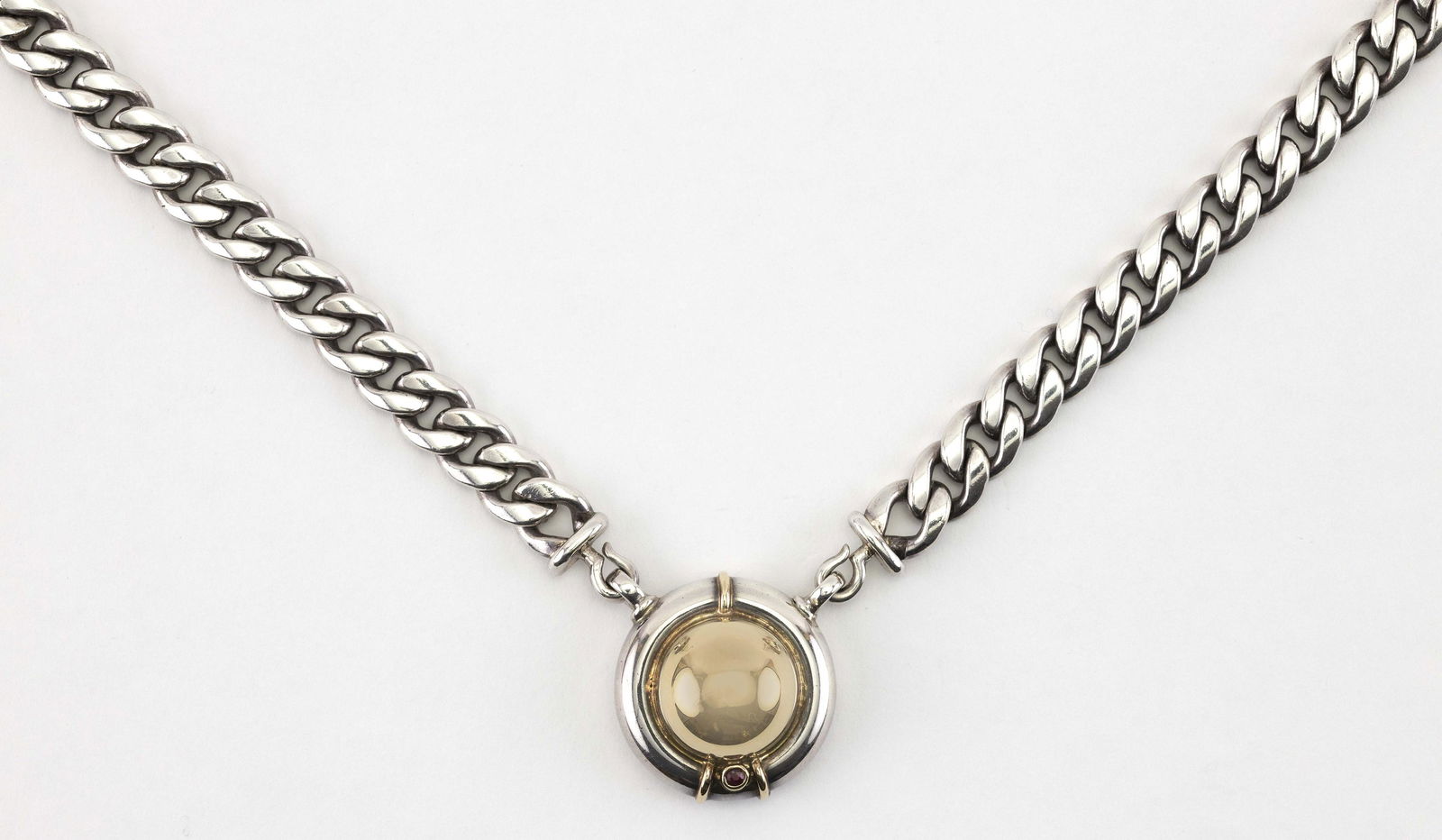 STERLING SILVER, 14KT GOLD AND RUBY NECKLACE Signed