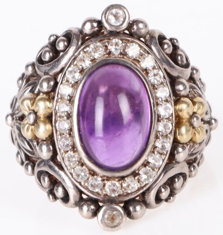 STERLING SILVER 18 KT. GOLD AMETHYST RING